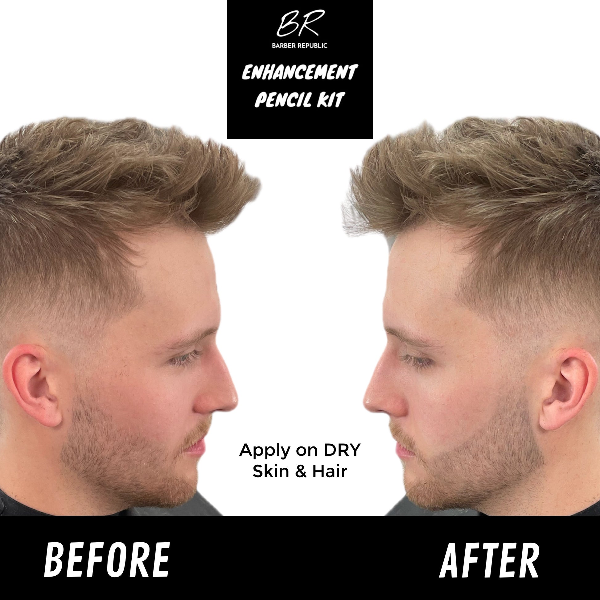 Enhancement Pencil Kit is used to enhance, darken, and fill hair and beard. Keep your enhanced look in and out of the barbershop. Made for barbers and clients.
